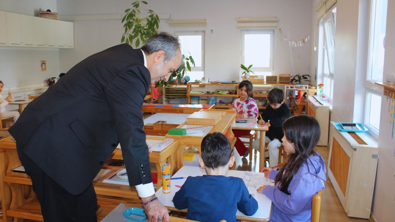 Kampüs ziyareti süresince miniklerimizle yakından ilgilenen ve yapılan faaliyetleri inceleyen Sn. TÜFEKÇİ, öğretmenlerimizle de istişarelerde bulundu.